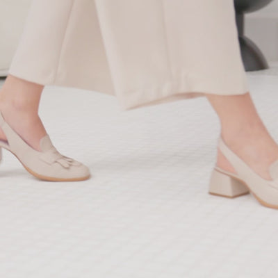We've turned your favorite loafer into a slingback! With a wearable heel height and stylish fringe detailing, 'Gigi' combines the timeless look of a loafer with the sleek, Spring-ready feel of a slingback heel. The ultimate smart Spring shoes, 'Gigi' is handmade from breathable cream leather to keep your feet cool in the heat and features a spacious square toe shape and soft underfoot cushioning
