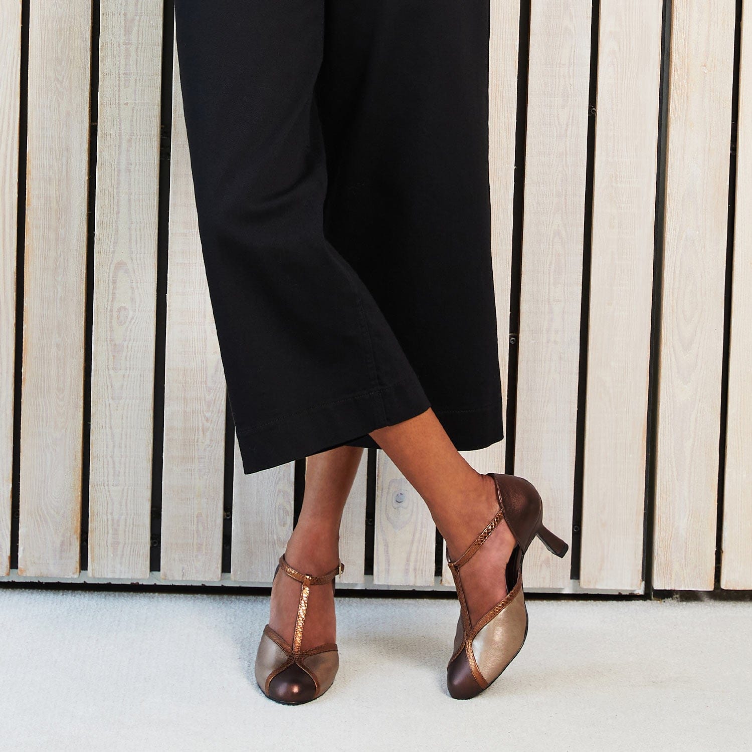 Meet Margot in smart and stylish new season shades! This smart pump for bunions is beautifully crafted from 3 luxurious leathers with the perfect amount of metallic detailing to elevate any outfit. A fashionable T-bar strap provides style and support. 3 layers of underfoot cushioning and our stretch panel for bunions offer luxurious comfort.