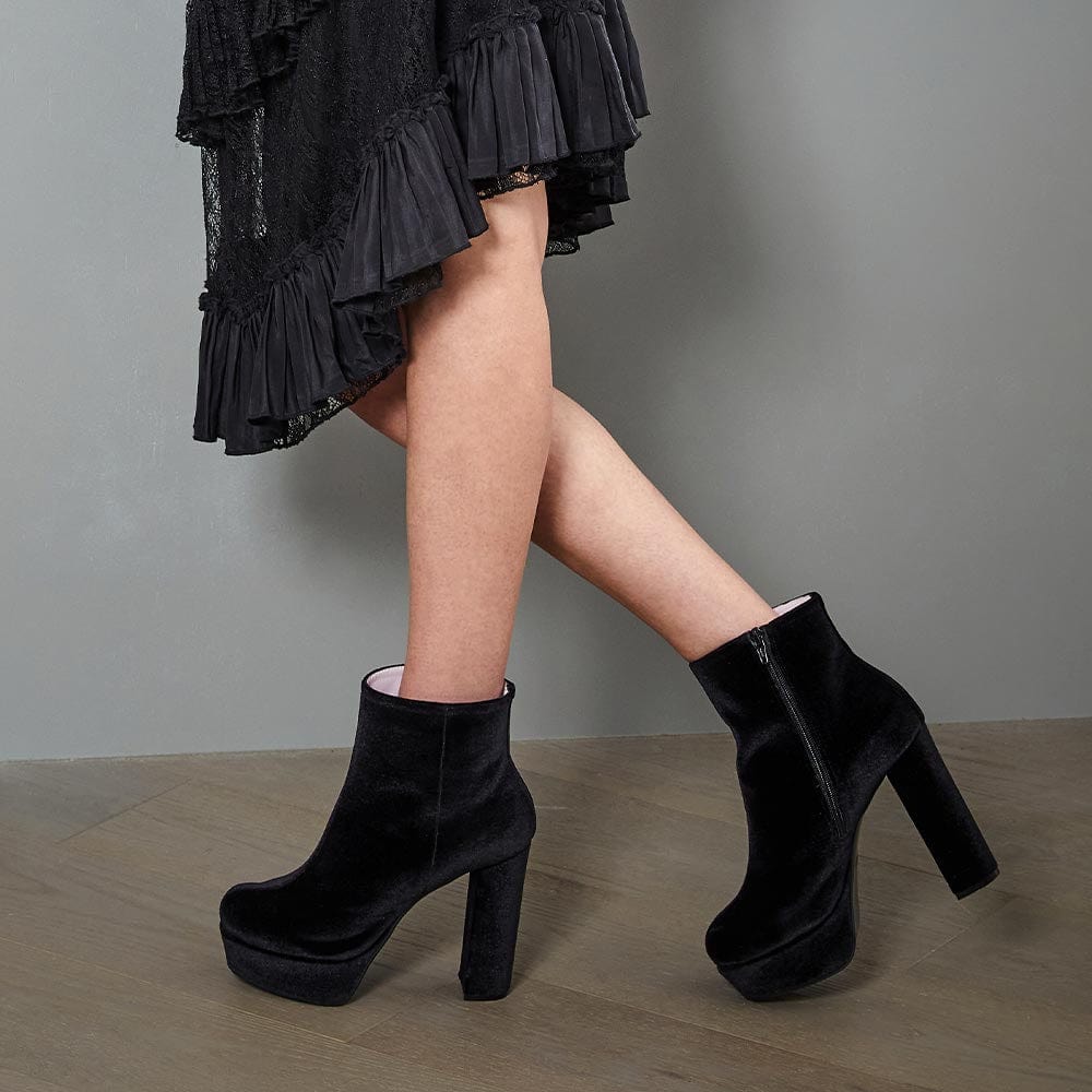 • Luxe black velvet heel and platform