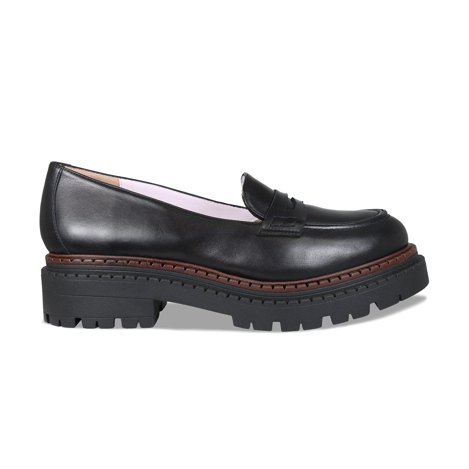 Award your closet with 'Trophy', our new luxe black leather loafers! These on-trend shoes feature a high fashion double platform sole, delivering both contemporary height and reliable grip for everyday wear. Contrast brown trim detailing creates striking visual interest, while the classic penny slot detailing adds timeless style. Soft leather linings and sumptuous underfoot cushioning makes these loafers so comfortable, you won't feel the height!